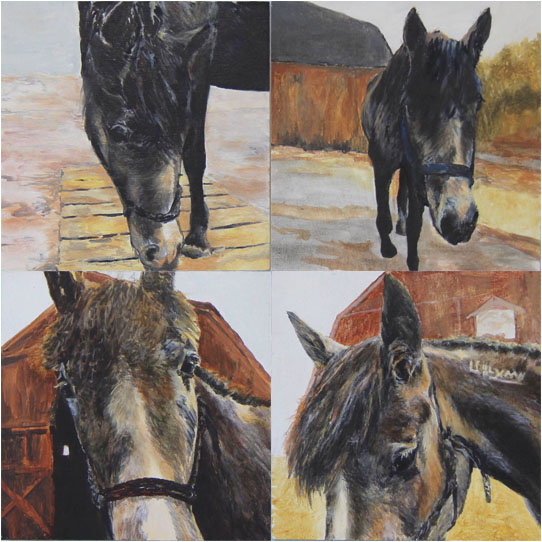 Burt the Mustang, Commissioned, (4) 6" x 6", oil on panel